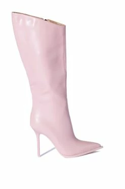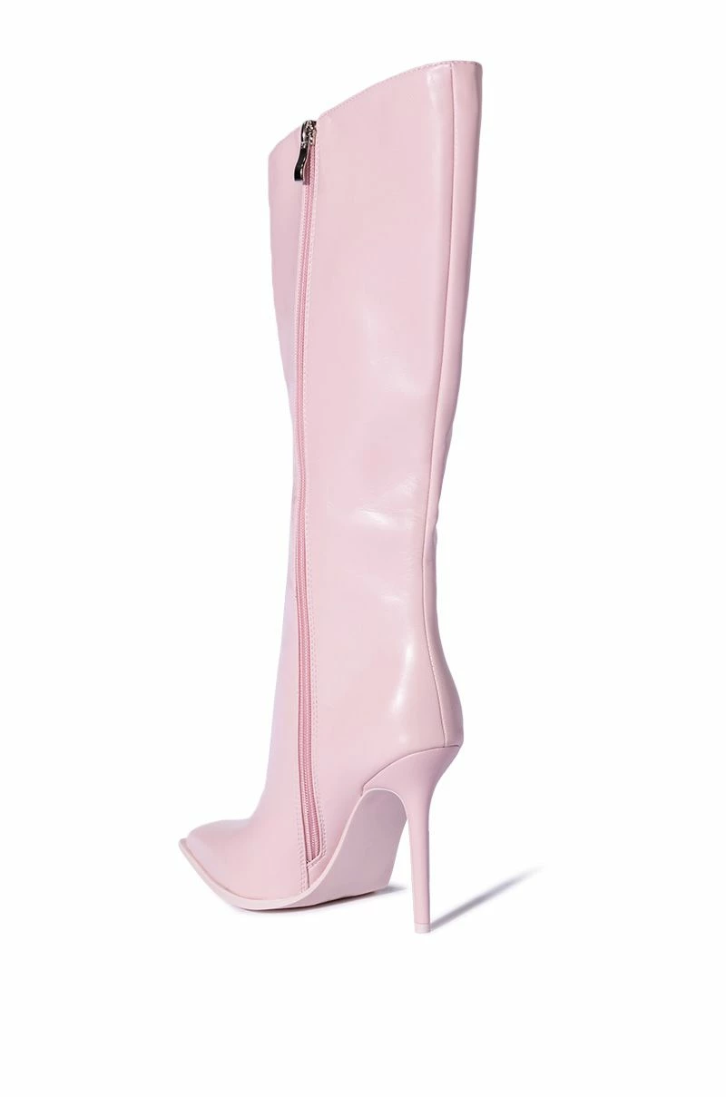 The AZALEA WANG All Angles Below The Knee Stiletto Boot is a vegan leather boot featuring an angular knee-high shaft, and a slim stiletto heel. Complete with a pointed toe and tonal inner ankle zipper. Style with skinny leg denim and your fave going out top for a killer fit.