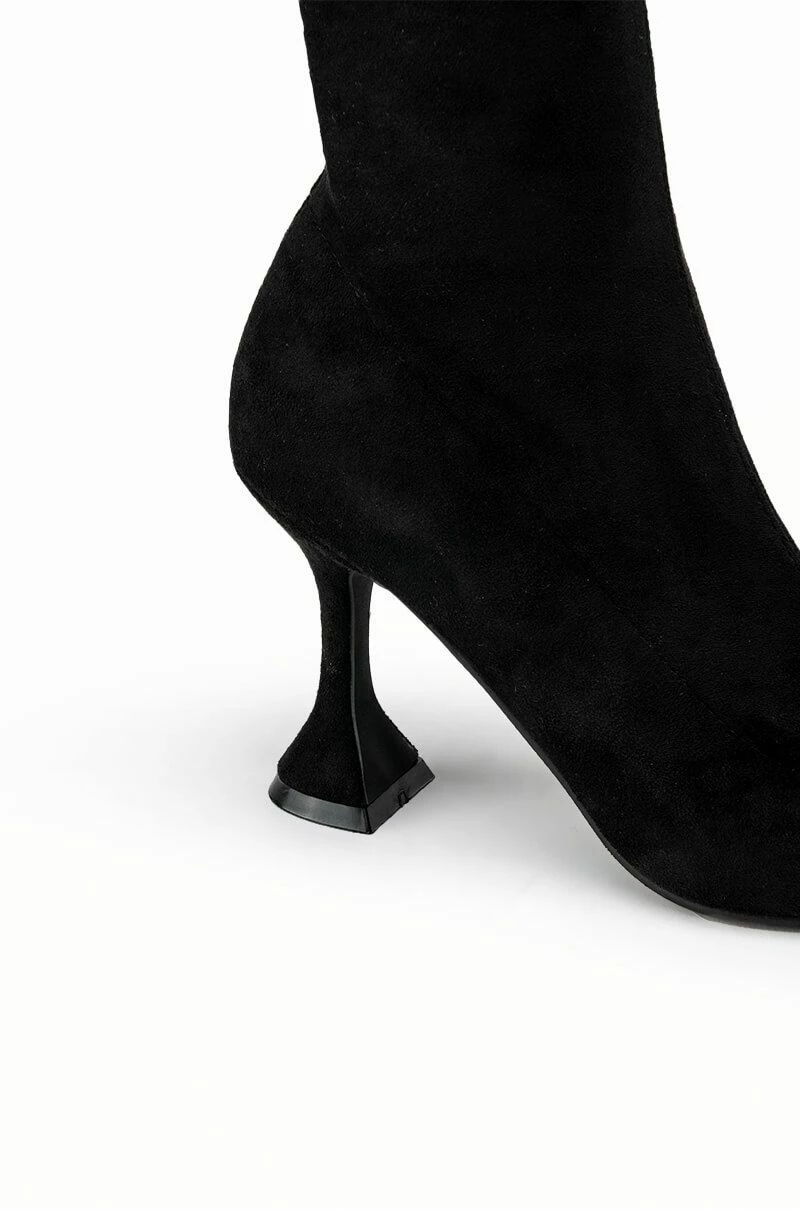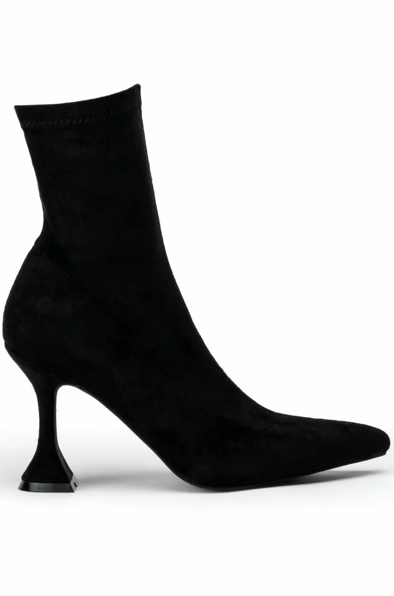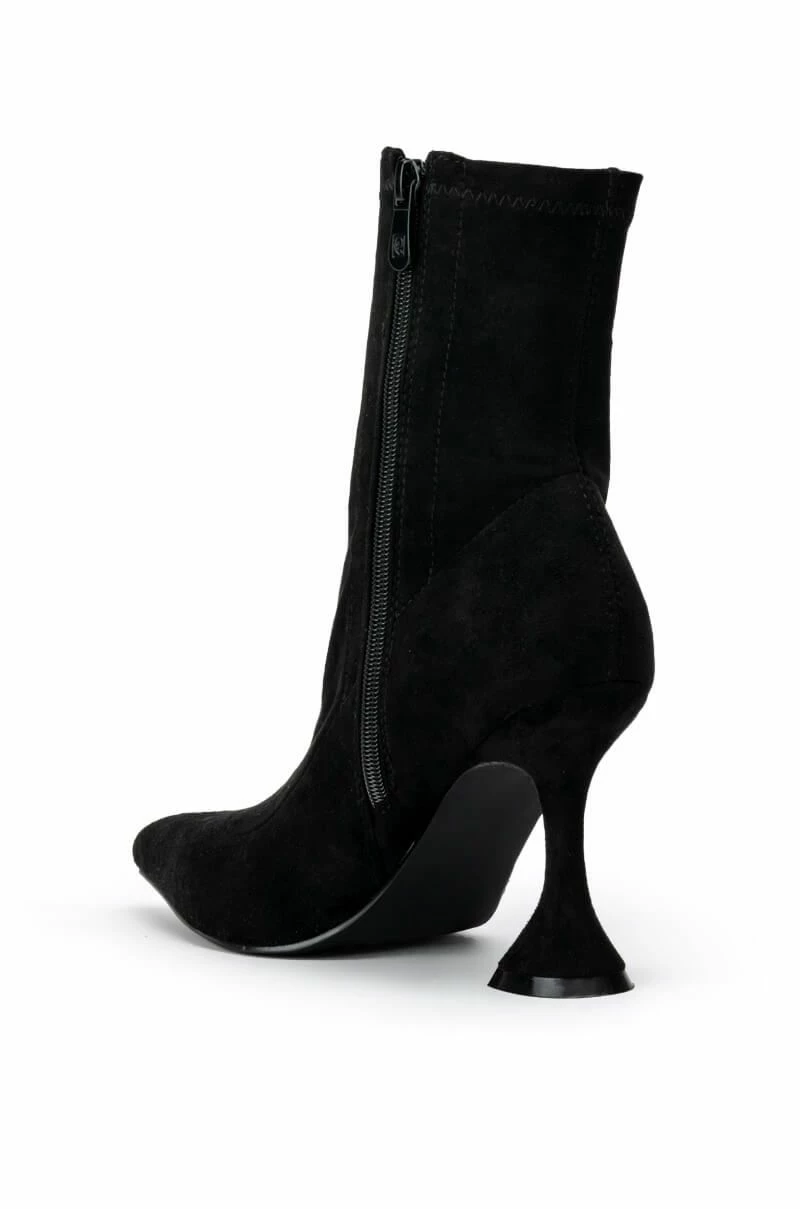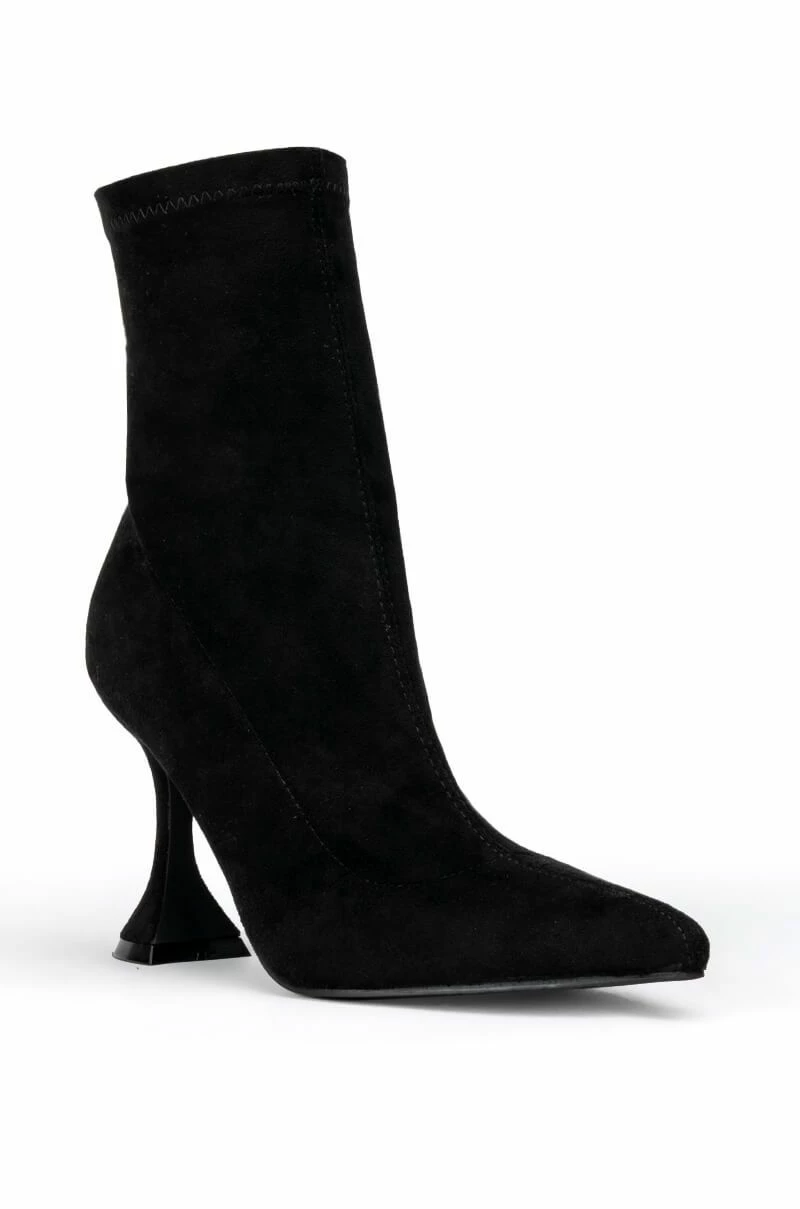 Don’t you forget! Take charge in The AZALEA WANG Its My Life Chunky Bootie In Black Stretch Suede. This stretchy faux suede ankle bootie features a flared pyramid hee, a tonal inner ankle zipper, and a pointy toe design. Complete your look with slim fit denim and a button down blouse.