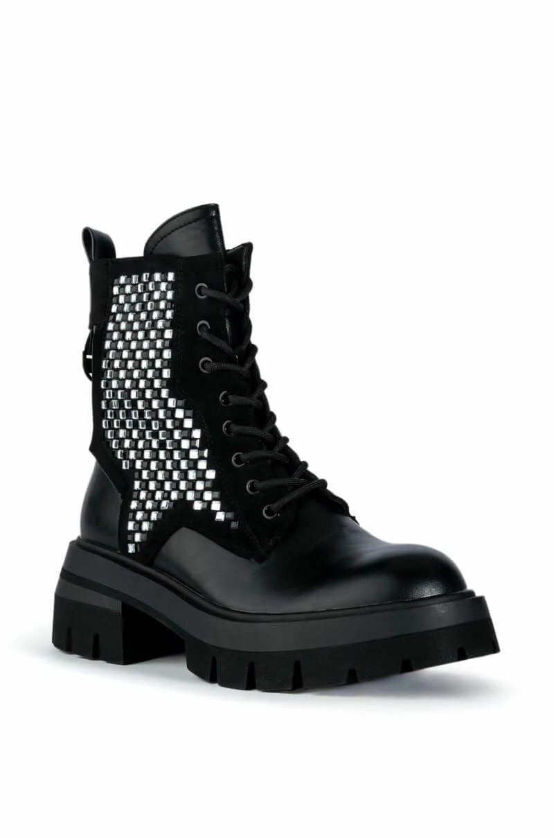 – Vegan leather and faux suede upper