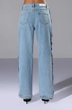 Stressed but blessed in The AKIRA Label Blessed Mess Side Snap High Rise Jeans! These high-waisted bottoms are made from a denim fabrication and feature working belt loops, front and back pockets, and a wide leg silhouette. Complete with snap buttons along the sides and bottom hems, and a classic zip button closure. Pair these pants with a cropped tee, fur-lined moto jacket, and heeled boots for an effortless luxe look!