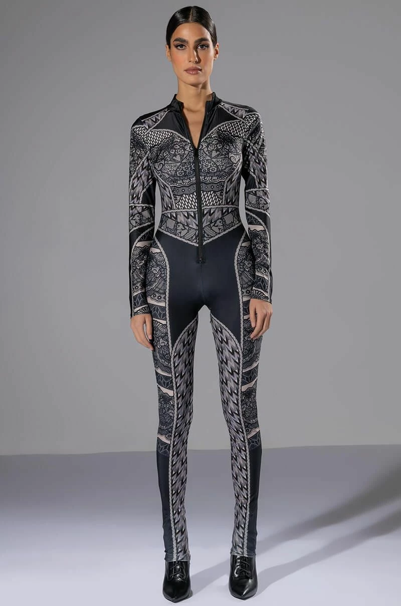 CATCH A GLIMPSE ZIP UP CATSUIT