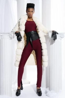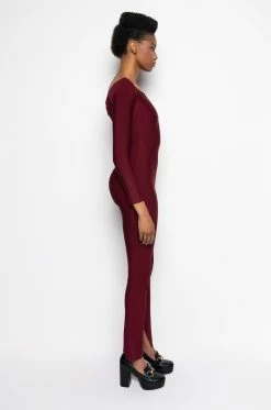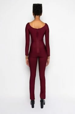 The AKIRA Label Does What She Wants Bandage Jumpsuit is a curve hugging jumpsuit made from a bandage fabrication. This piece is also complete with a scoop neckline, long sleeves, ankle slits and a hidden back zipper closure.