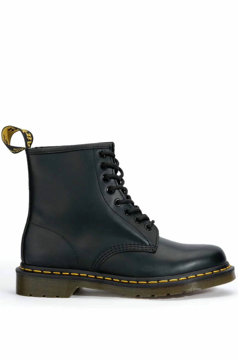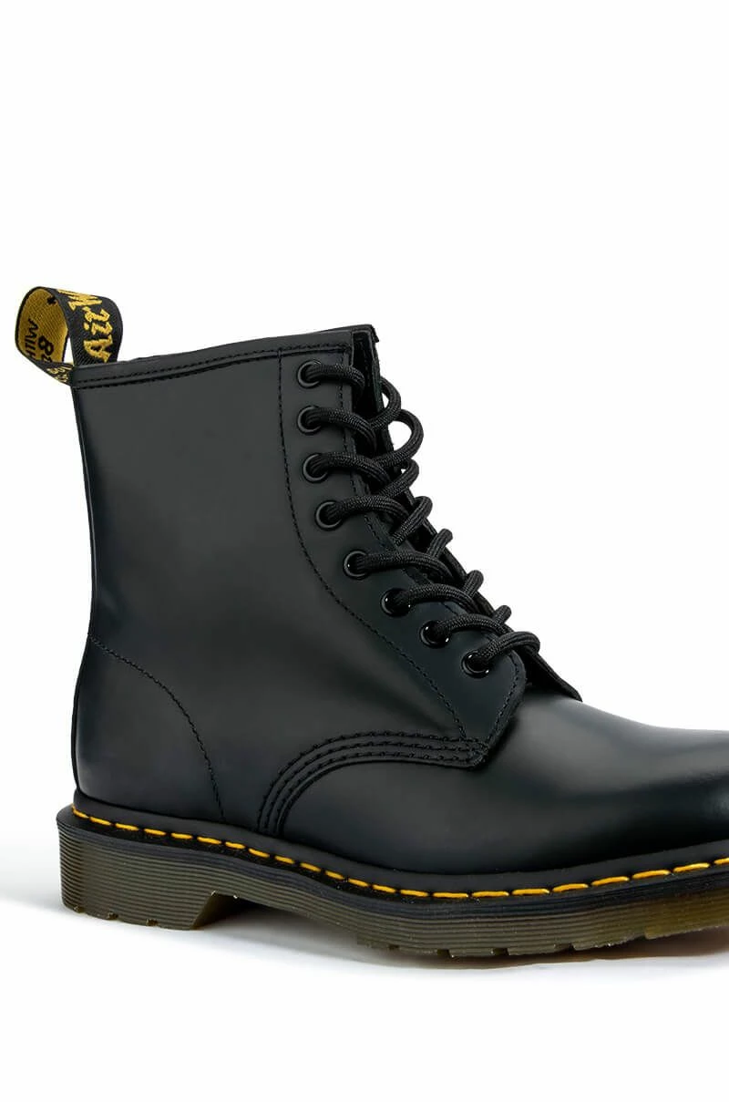 The Dr. Martens 1460 Smooth Boot is a must-have for every fall wardrobe. This mid-calf height combat boot features a smooth leather lace up design, signature pull tab, round toe, and contrast weaving along the sole. Complete with a textured sole, tonal laces, and 10 metal eyelets. Pair with denim, skirts, even joggers to toughen up any look.