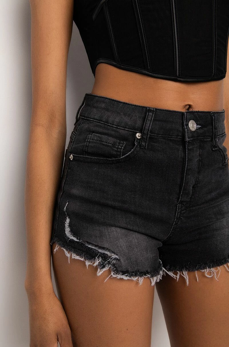 Snatch your waist and show off that booty in style with The AKIRA Label Flex-Fit High Waisted Super Stretchy Denim Shorts! These stretchy faded denim bottoms feature a curve-hugging construction, a high rise waist, a classic zip button closure, distressed detailing, and a raw hemline. Complete with a functional five pocket design, working belt loops, and silver metallic hardware. Style these with your favorite crop tops and sleek ankle booties for a casual moment that puts your sexy self front and center.