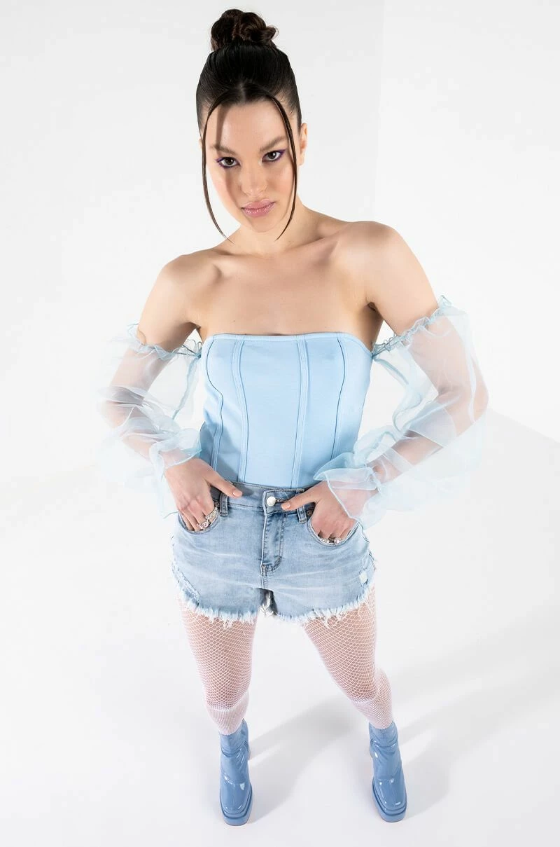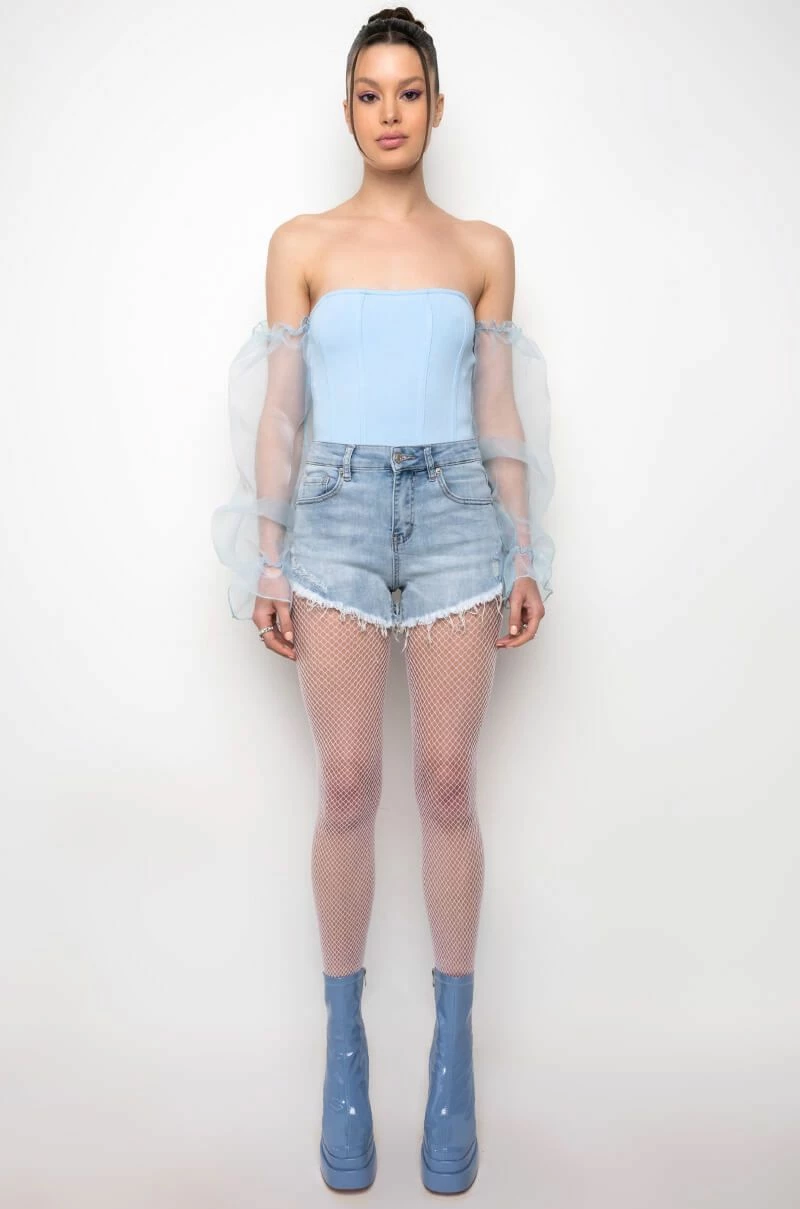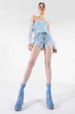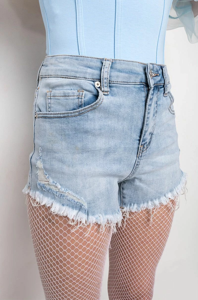 Snatch your waist and show off that booty in style with The AKIRA Label Flex Fit Extreme Stretch High Waisted Denim Shorts! These stretchy faded denim bottoms feature a curve-hugging construction, a high rise waist, a classic zip button closure, distressed detailing, and a raw hemline. Complete with a functional five pocket design, working belt loops, and silver metallic hardware. Style these with your favorite crop tops and sleek ankle booties for a casual moment that puts your sexy self front and center.