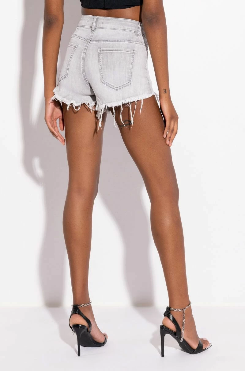 Snatch your waist and show off that booty with The AKIRA Label Flex-Fit High Waisted Super Stretchy Denim Shorts. These denim bottoms feature a curve-hugging construction, a high rise waist, a classic zip button closure, distressed detailing, and a raw hemline. Complete with a functional five pocket design, working belt loops, and silver metallic hardware. Style with your fave graphic crop tops and sleek ankle booties for a casual moment that puts your sexy self front and center.