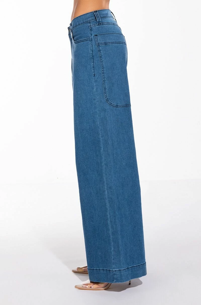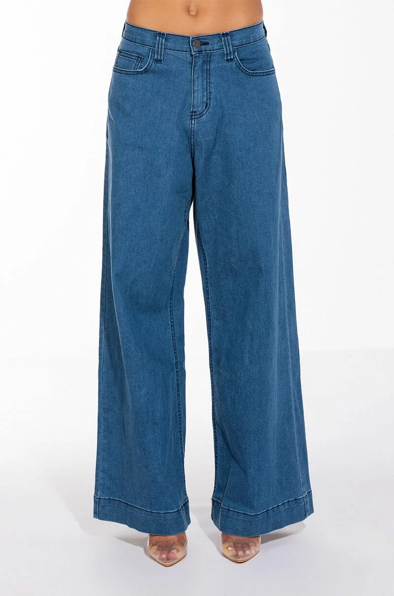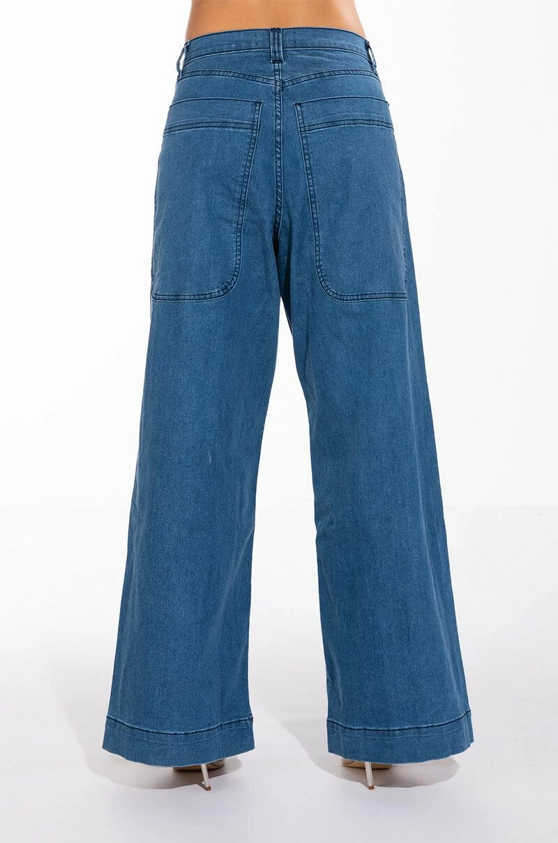 Stay present in The AKIRA Label In The Moment High Rise Ultra Wide Jeans. These stretchy cotton-based denim pants feature a wide leg silhouette, a high rise waist, functioning belt loops, a classic five-pocket design, and a front button and zipper closure. Style these with your favorite tee or sweater and a pair of pointed toe booties for a casual chic look!