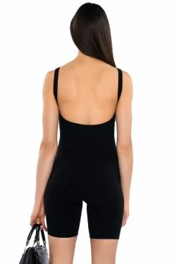 The AKIRA Label Jenna Classic Scoop Back Romper is made from a stretchy ribbed knit fabrication and features a scoop neckline, tank straps, a scooped open back, and a pull-on silhouette. Style this cozy romper with an oversized shacket and chunky sneakers for a chic athleisure look!