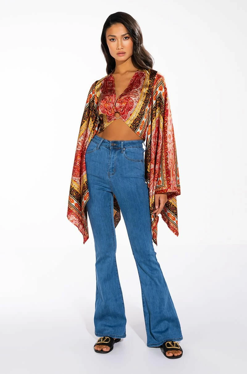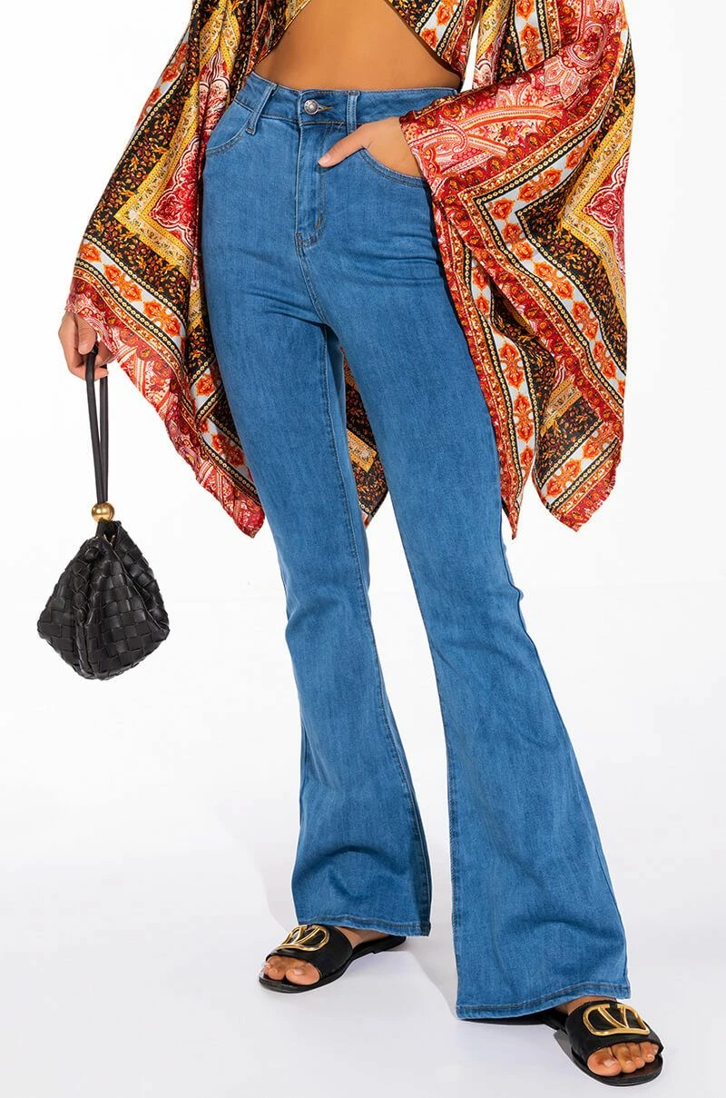 Let’s get groovy in the AKIRA Label Lena Super High Rise Flare Denim Pants. Crafted from a stretch denim base, these dark wash jeans provide a retro look with an ultra high rise waist, flare leg silhouette, and functional pocket design. Take a trip back in time with this pair.