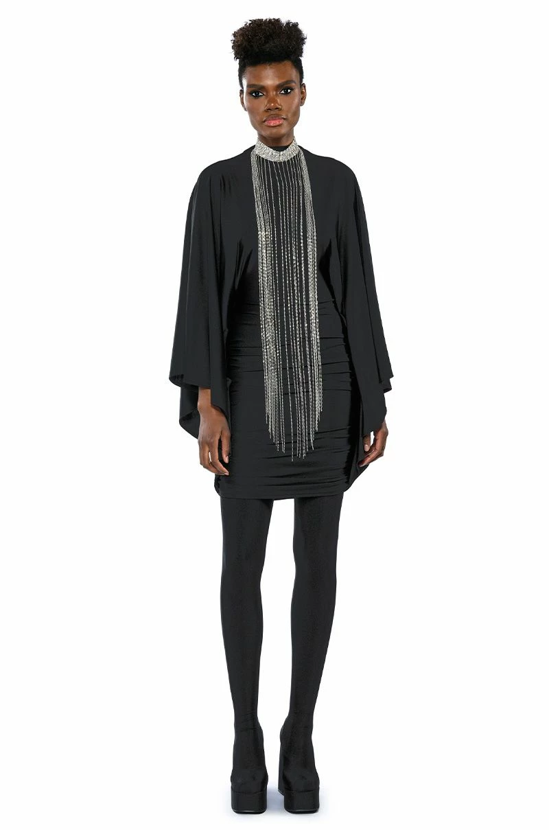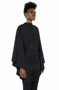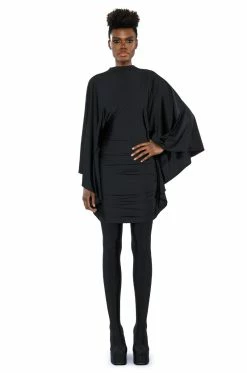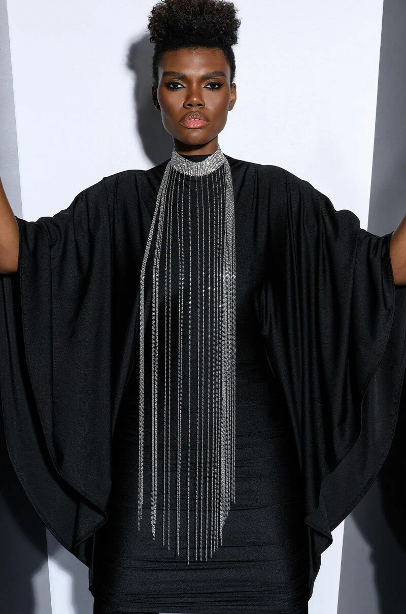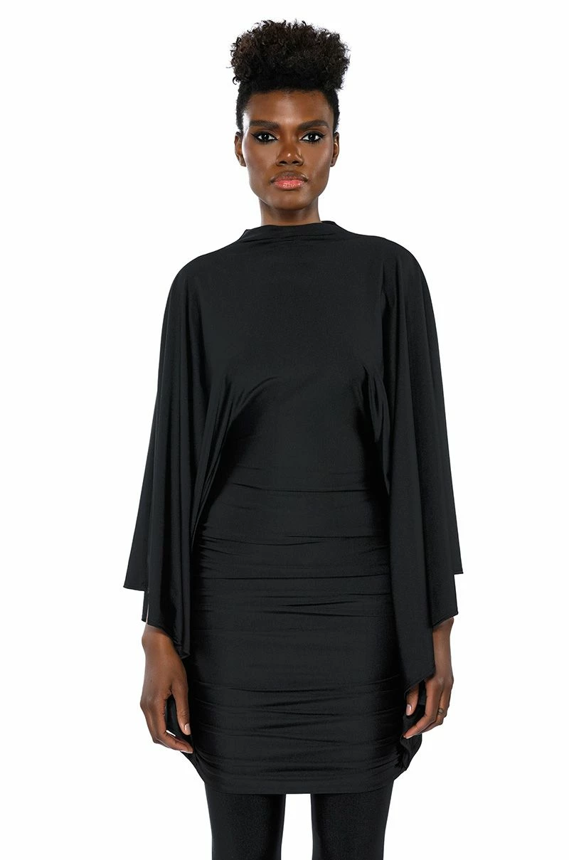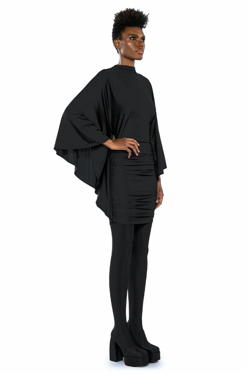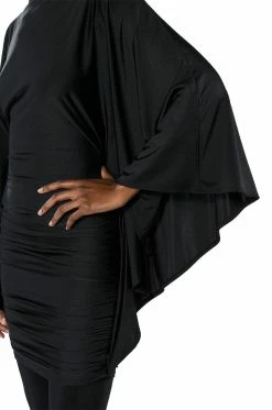 The AKIRA Label Like A Statue Butterfly Mini Dress in Black features a smooth, stretchy fabrication, a subtle mock neckline, long batwing sleeves, and a mini length. Complete with a gorgeous winged design, accentuating its flattering bodycon silhouette. Slip into this dress for a sexy, comfy, elegant look!