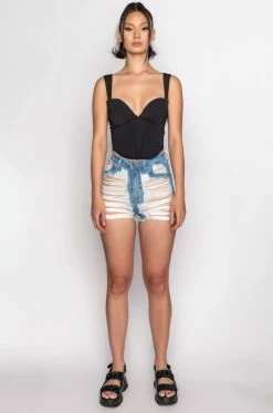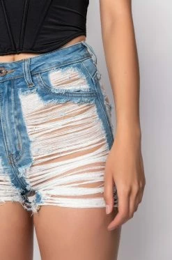 The Love You To Pieces Denim Short is made from a super stretchy denim fabrication and features ultra distressed detailing, a high rise waist, working belt loops, mock front and back pockets, and a classic button and zipper front closure. Pair these shorts with a slick bodysuit and platform sandals for a super sexy casual look.