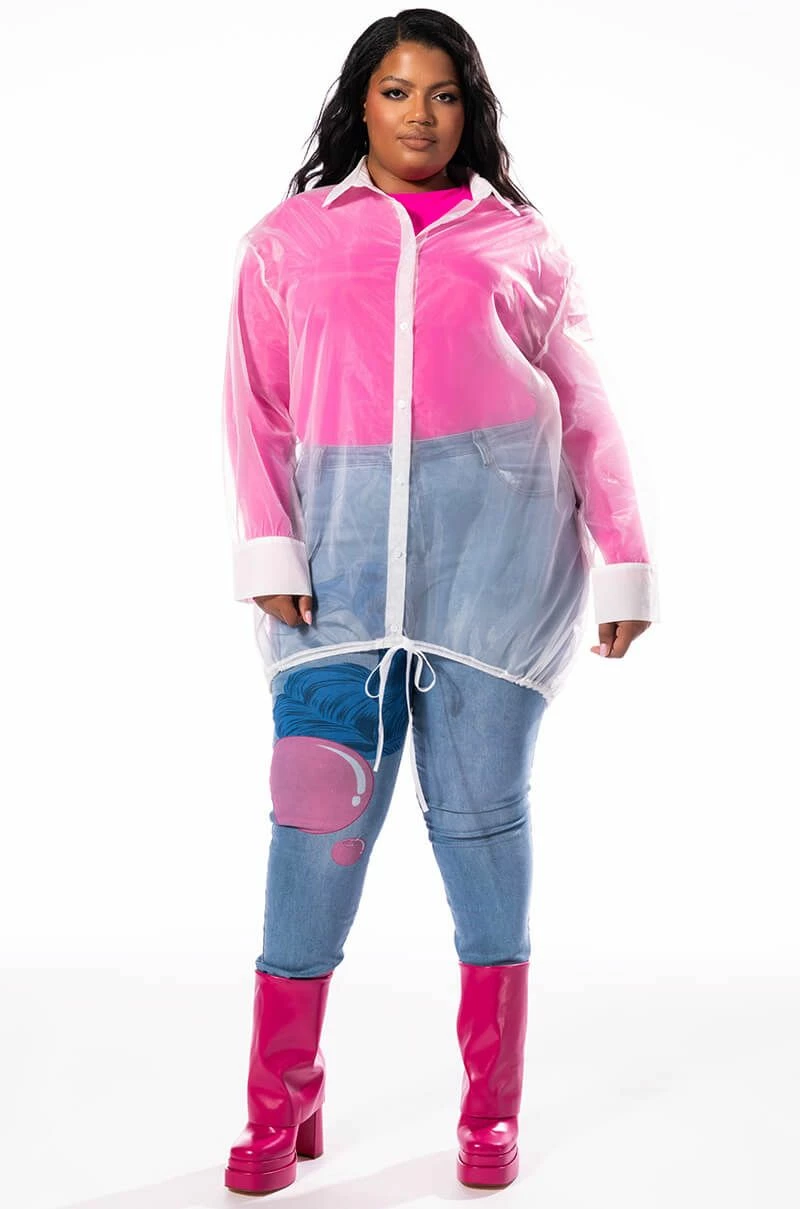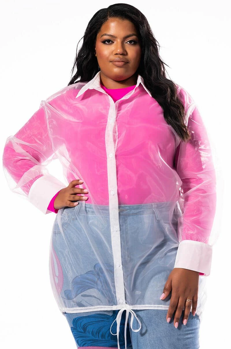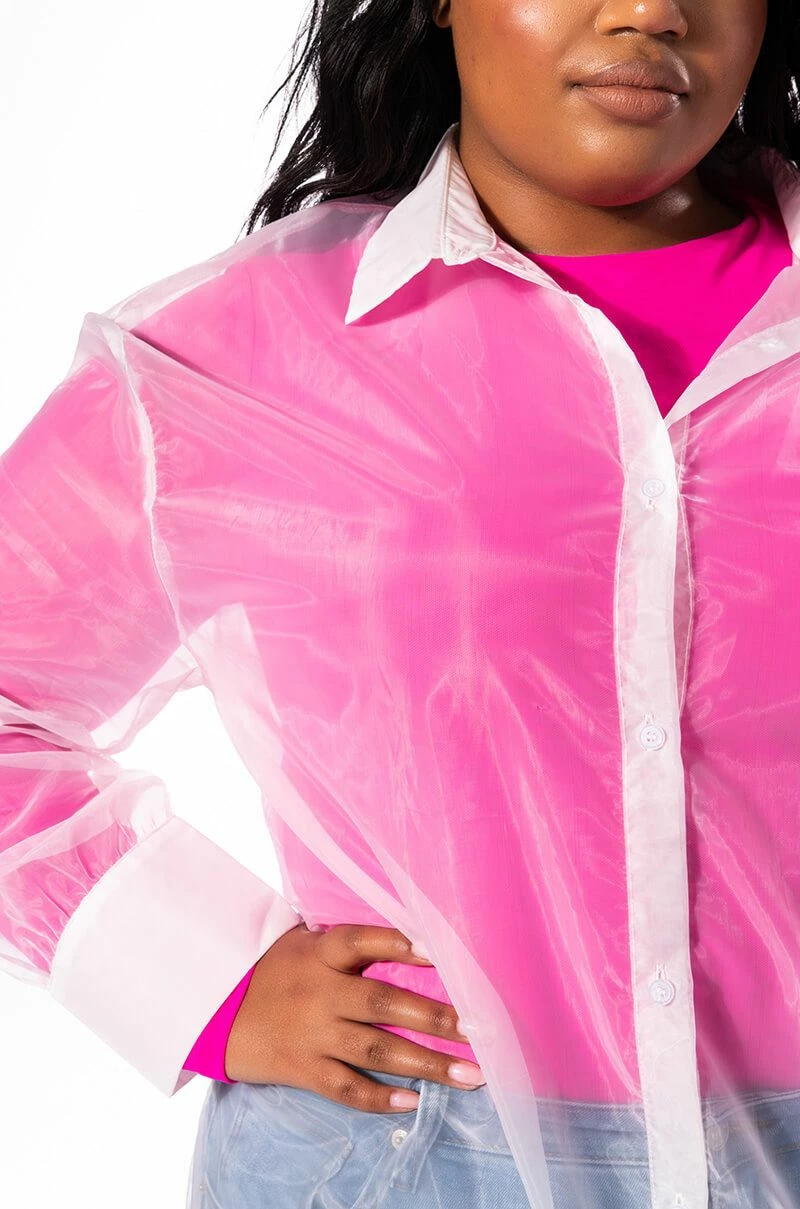The PLUS AKIRA Label Showin’ Off Button Up Tulle Dress features a sheer tulle fabrication, subtle high low silhouette, long line length, collared neckline, button wrist details, and front button up closure. Complete with an adjustable drawstring hemline closure.