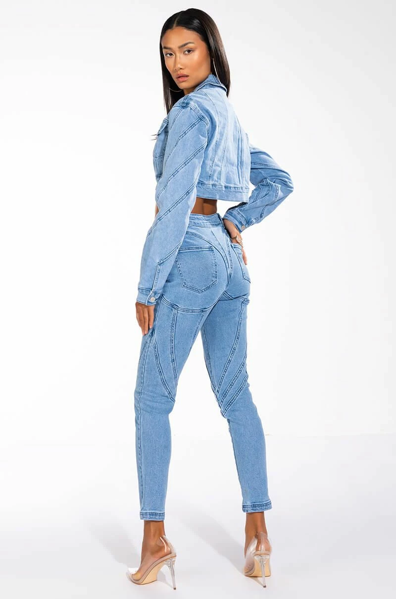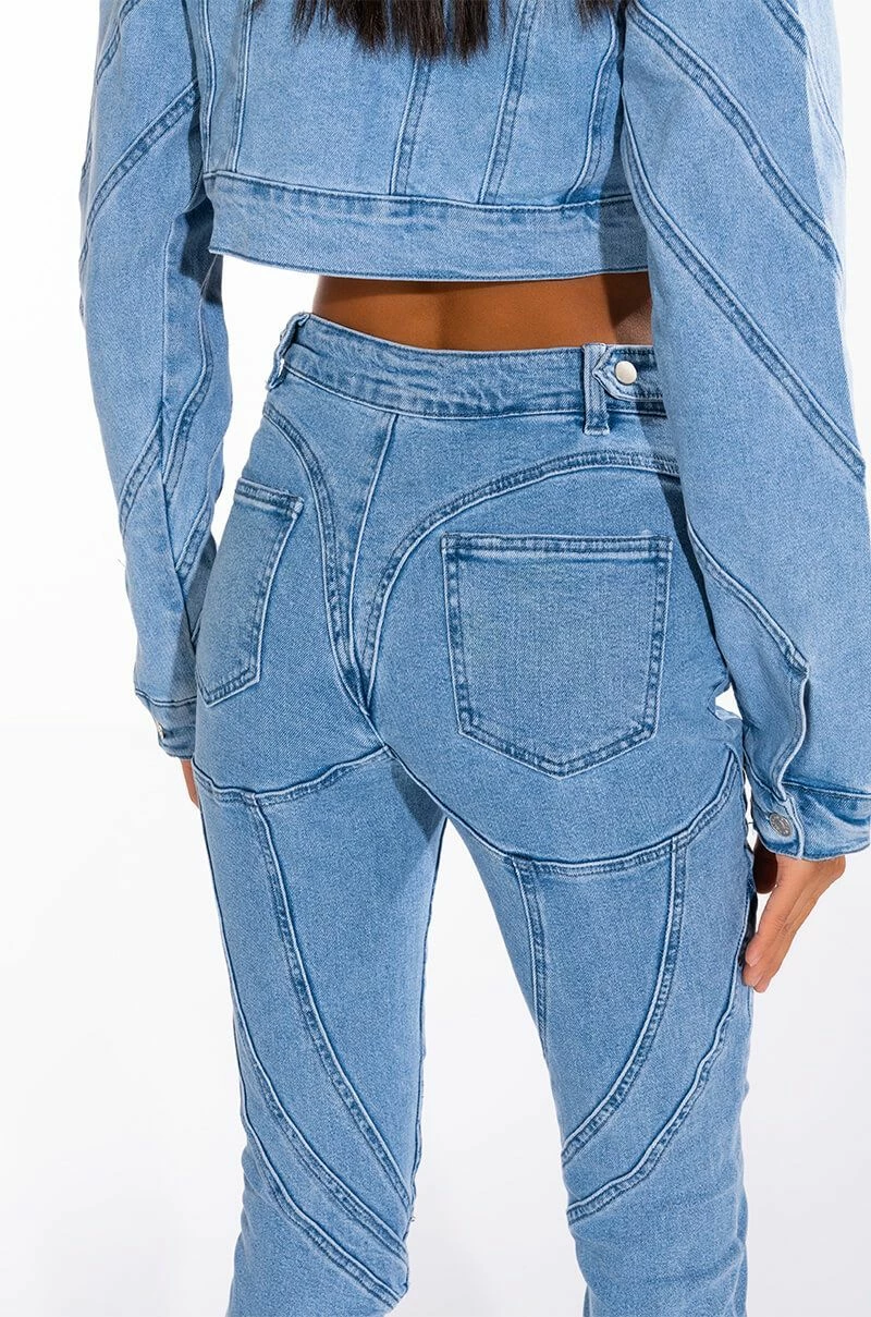 An absolute must buy! The AKIRA Label Worth It High Waisted Skinny Jeans are an elevated everyday pant featuring a structured denim base, a high rise waist, a functional five pocket design, concealed front zip fly, button loop closure, and a slim leg fit. Complete with flattering and unique seam detailing designed to highlight your curves. Pair this piece with the coordinating AKIRA Label Worth It Cropped Denim Jacket to complete your look.