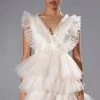 The AKIRA Label Wren Ruched Zip Up Mesh Mini Dress in Olive is made from a sheer mesh fabrication and features a collared neckline, long sleeves with wide, buttoned cuffs, an opaque sweetheart neckline bodice, ruched body detailing, a mini length silhouette, a drawstring hem, and a front zipper closure with ring detail.