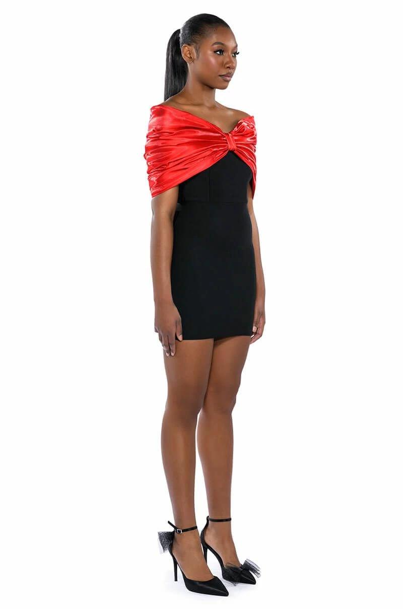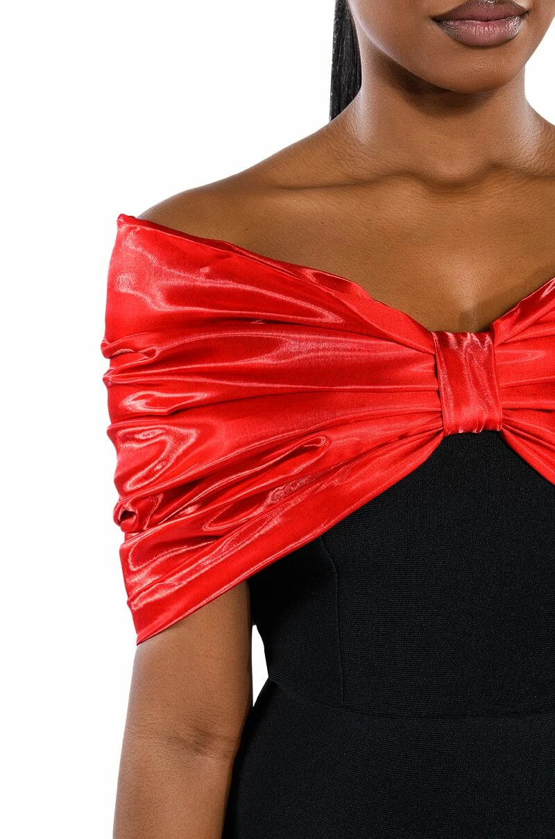 The AKIRA Label Zuri Statement Bow Bandage Mini Dress is made from a curve-hugging bandage fabrication and features a strapless straight across neckline, shimmery, off-shoulder sleeves in a bow-like design, a sexy bodycon fit, a mini length silhouette, and a tonal back zipper closure. Pair this piece with pumps and a clutch to complete your party-ready look!